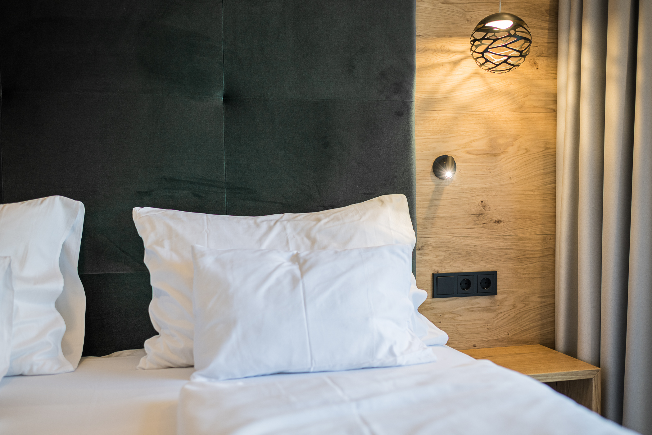Aufwachen mit Bergpanoramaaussicht oder mit total entspannenden Blick zum nahen Wald in unseren Alpinpanorama-Juniorsuiten, eingerichtet mit edlem Zirbenholz, heller Birne, honigfarbener Fichte oder ganz neu mit naturbelassener wertvoller Eiche.