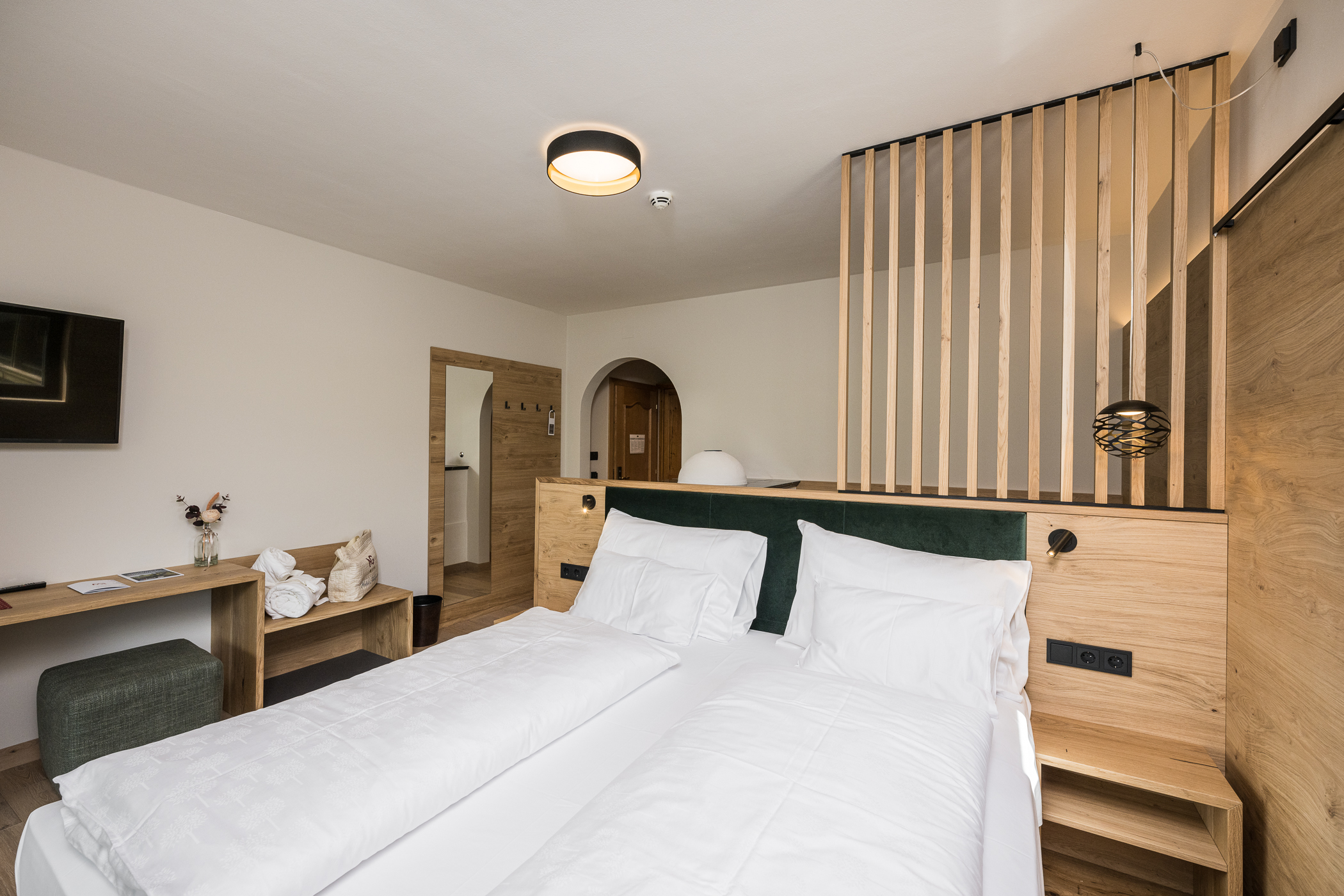 Entspannt den Alltagesstress vergessen können Sie in unseren neuen Juniorsuiten "Relax" eingerichtet mit naturbelassem Holz und heimischen Materialien.