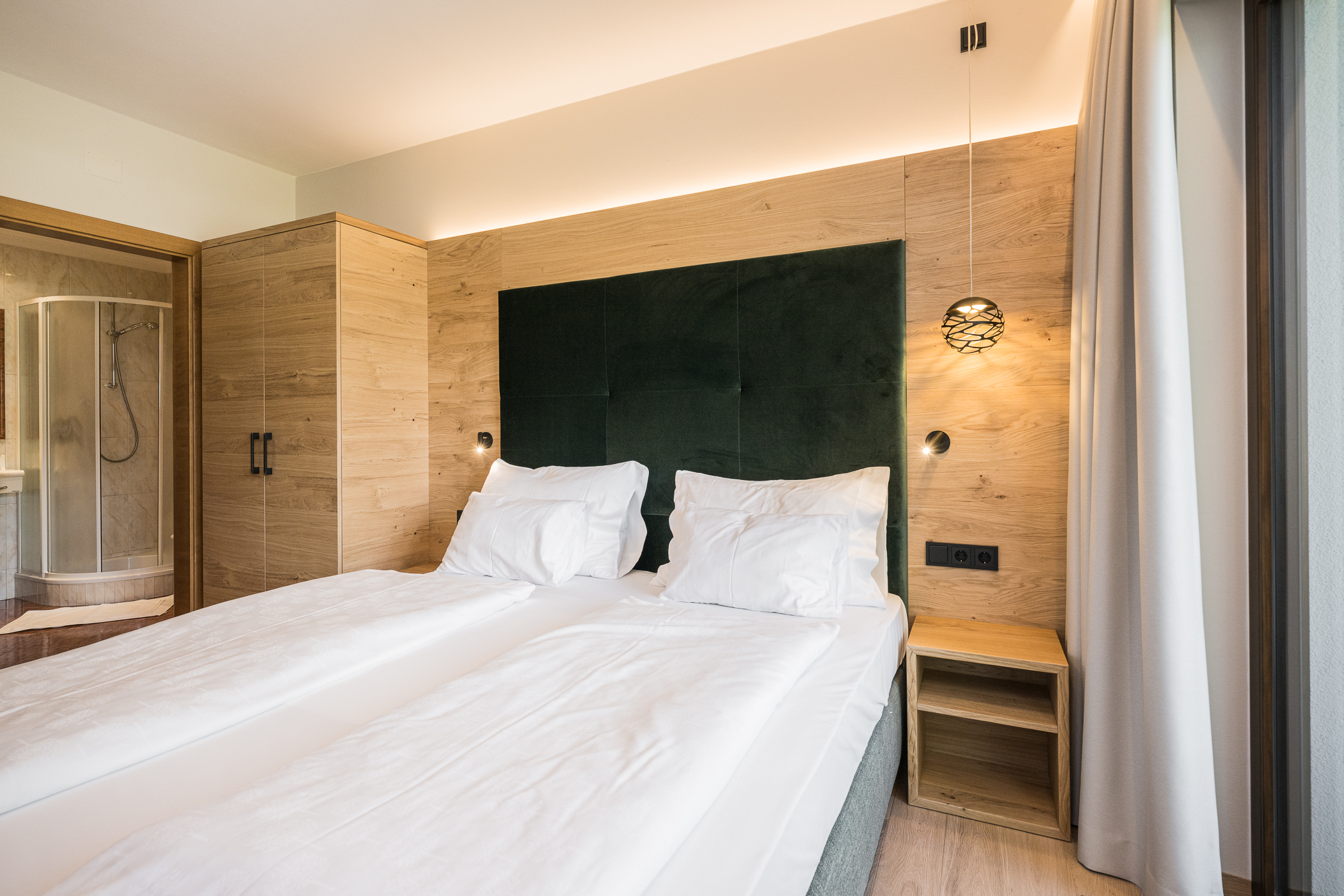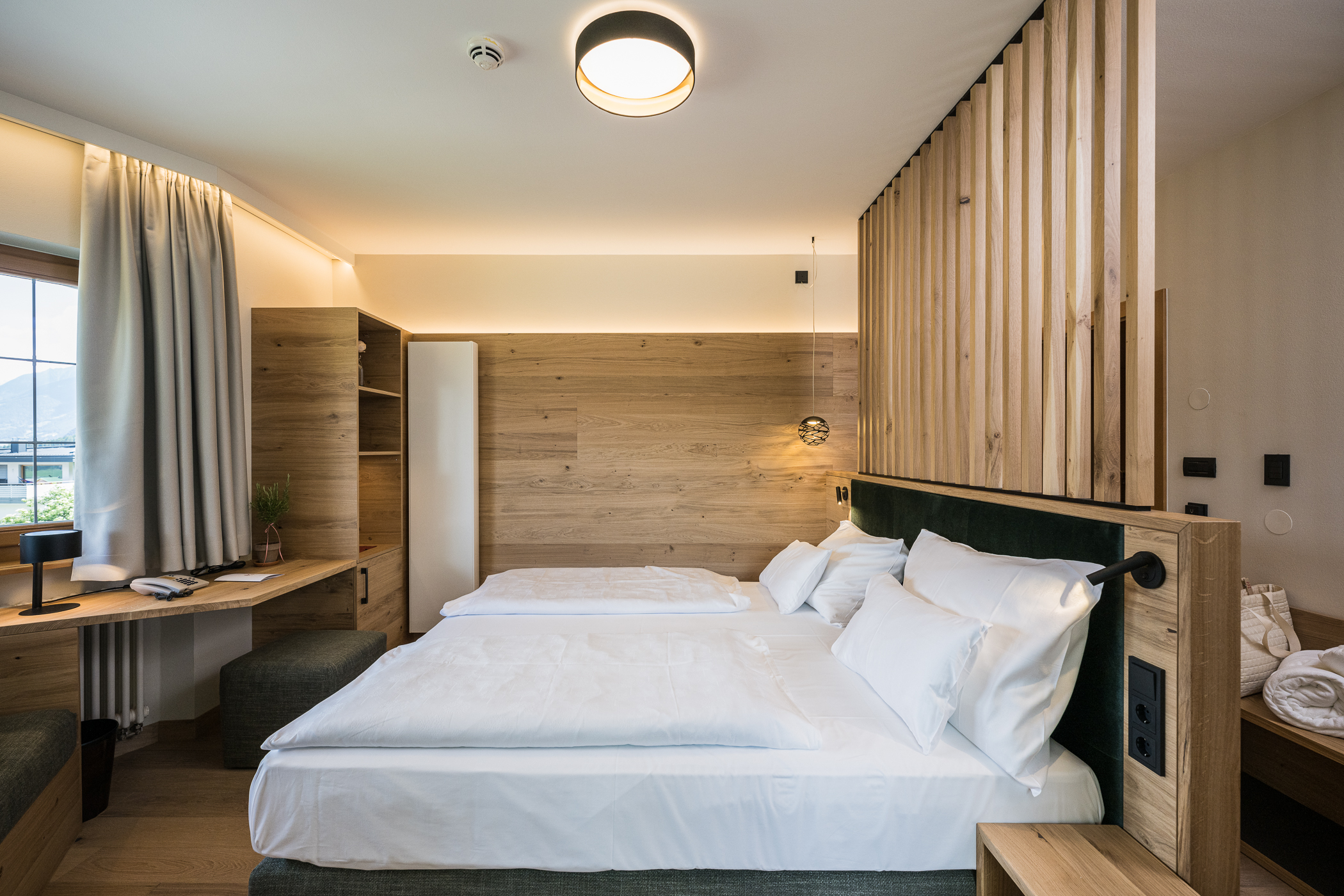 Grazie al legno dei nostri boschi, materiali naturali e tessuti di alta qualità accuratamente selezionati, abbiamo creato un ambiente incredibilmente caldo, raffinato e confortevole. I materassi delle nostre camere sono pensati per il benessere del vostro riposo e la salute della vostra schiena, regalandovi così un sonno ristoratore. Scoprite l’intimità delle nostre camere doppie, le spaziose Junior Suite o le nostre nuove Wellness Suite con sauna privata – per il massimo del relax