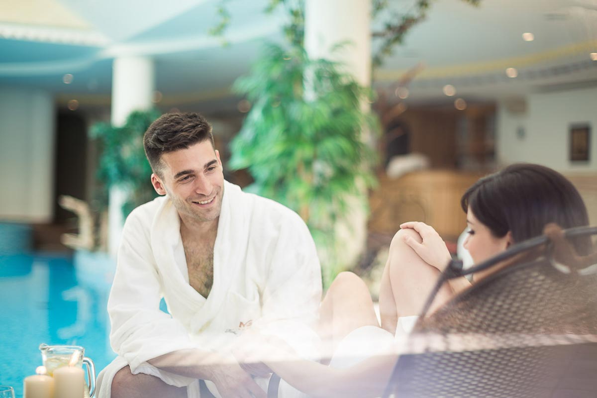 Unser Wellnessbereich besticht nicht mit Quantität, sondern mit Qualität. Der allzeit herrliche Blick über das entspannende Grün der Wiesen und des Waldes, welche unser Hotel mit Schwimmbad in Südtirol umgeben, lässt Ihre Alltagsgedanken einfach so verfliegen, und es gibt dann nur noch eines: Die Zeit für sich selbst und das Wohlgefühl des Augenblicks! Entdecken Sie in unserem Hotel mit Pool eine feine Wasserwelt, die zum Verweilen einlädt.